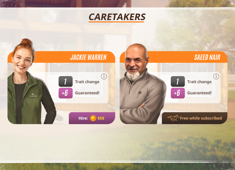 If you’re a Starclub subscriber, you get a caretaker automatically hired upon the birth of your foal. This gives you guaranteed stat point bonuses and a trait change if you choose to use it.