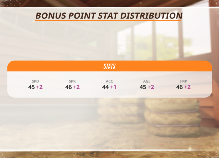 The bonus stats earned through Foal Care will be randomly assigned across your horse’s stats. They can’t be inherited by that horse’s future offspring, but they do give you an extra edge in competitions!