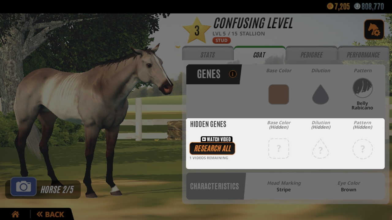 Players now have the option to uncover their horse's hidden genes by watching a video, which can assist in breeding efforts. This feature is limited to once every 24 hours, so be sure to take advantage of it in order to breed your desired horse. If there are no videos available you can still pay gold to reveal hidden genes.