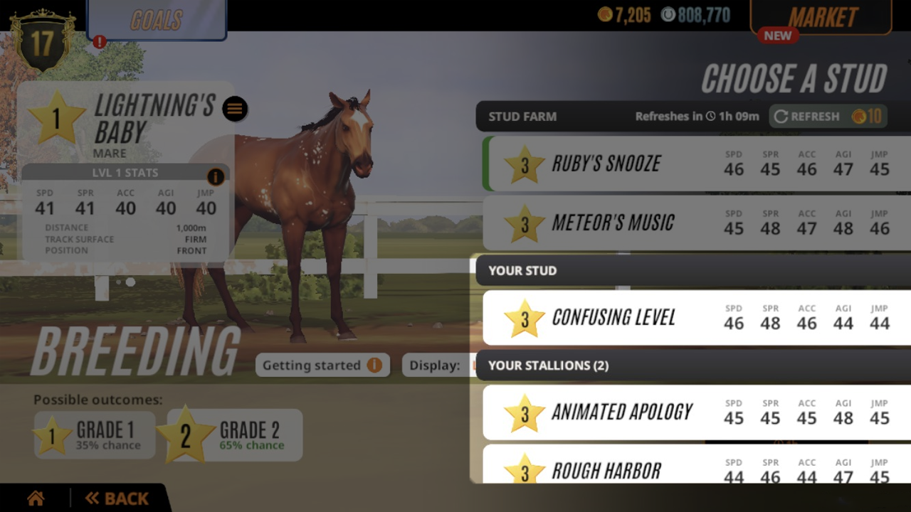 Enhancing your breeding efforts just got simpler. While selecting horses to breed with, players can now conveniently view a list of available stallions that they own on the Breeding screen. Setting your horse as a Stud will also increase its visibility by moving it to the top of the list.