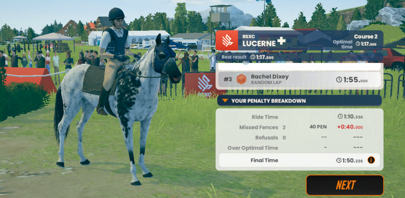 Scoring has undergone a balancing change to fall more in-line with Live Events. Going forward, any penalty points accrued by missing or having your horse refuse a jump will now add time to the end of your run.