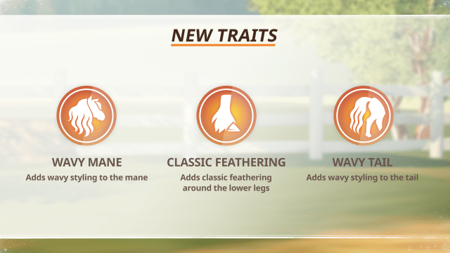 Purebred Friesians will have access to the Pro version of Agile Arrow, giving them a boost to Agility. This update also introduces three cosmetic Exotic Traits inspired directly by the Friesian’s iconic look: